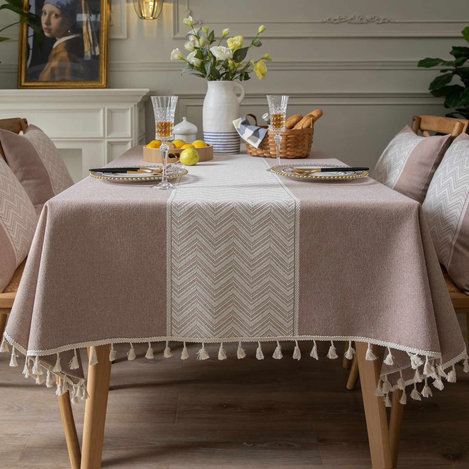 伊缦琪韻和式擬綿麻菱形ジャカードテーブル布文芸円卓テーブル布芸長方形