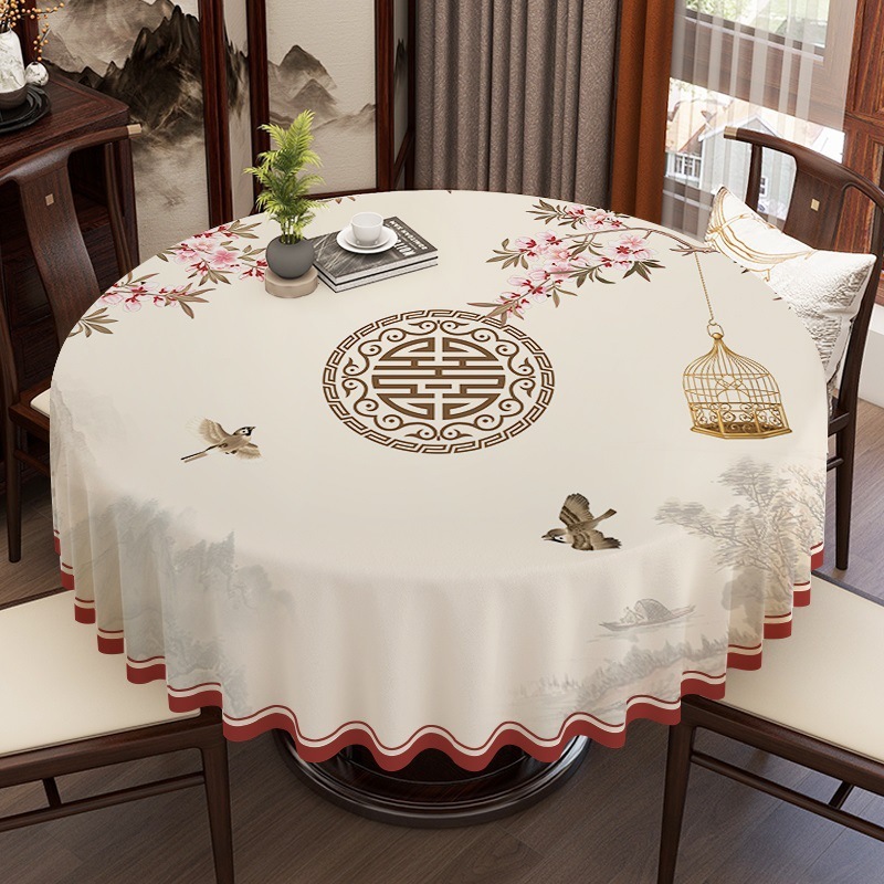 円卓テーブルクロス防水・油洗浄・熱防止中式円形テーブルクロステーブルクロス軽量高級感pvcテーブルマット