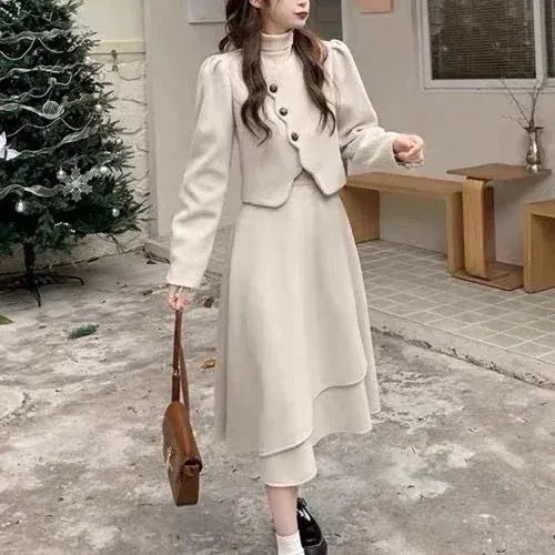 【送料無料】セットアップ 韓国 春 厚手 ラシャ 二点セット スーツ+スカート ジャージ ショット丈 ジャケット 韓国 レディース