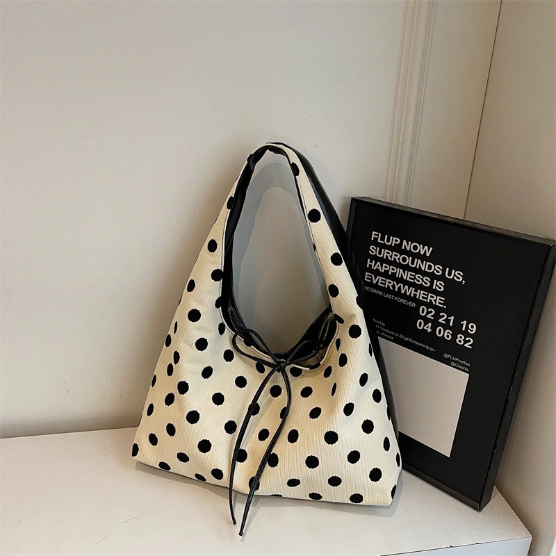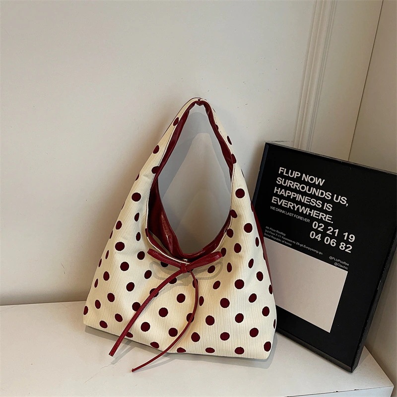 シンプルリボンショルダーバッグレディースバッグ新作おしゃれドット柄トートバッグ高感度通勤バッグ