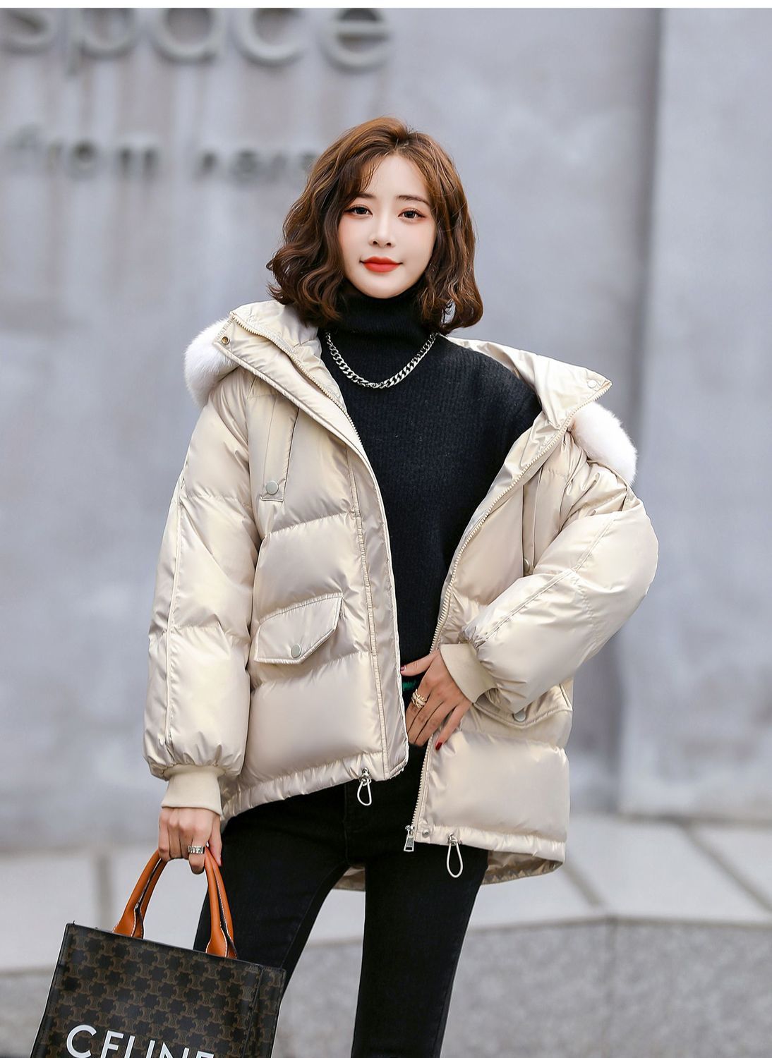 人気アウター 無洗礼亮面ダウン綿入れ女性ショート丈冬厚手綿入れ保温ゆったり気質毛糸ジャケット