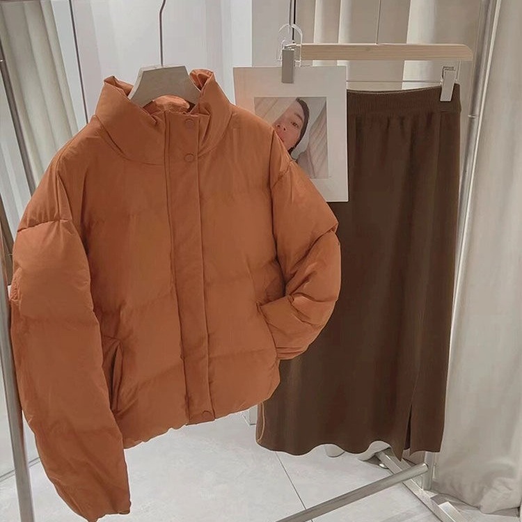 カボチャオレンジのショート丈綿入れコート女性秋冬超きれい厚手パン服小柄保温綿入れ