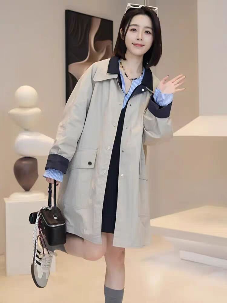 人気アウター 爆発的な韓版感のリバーシブルトレンチコート秋の新ゆったり細身ミディアム丈トップス