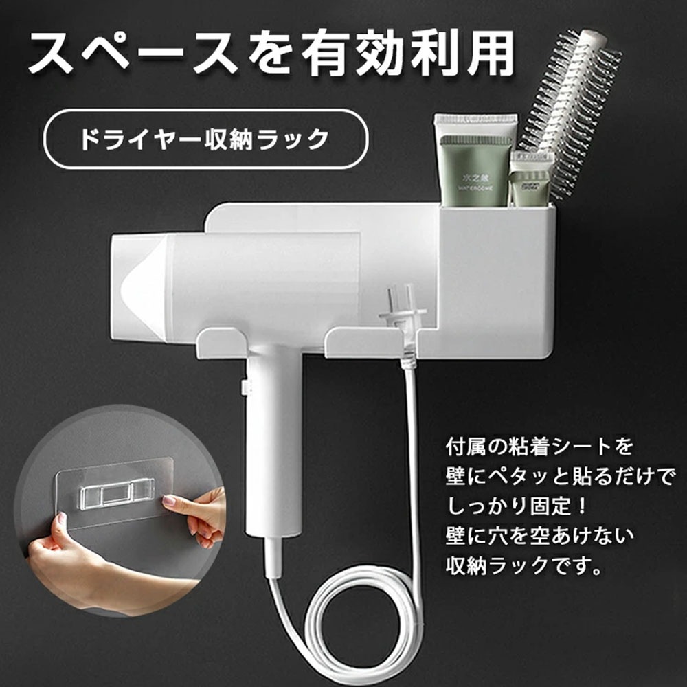 ドライヤーホルダー 壁掛け ドライヤースタンド ドライャー収納ラ3天出荷 ック多機能 穴開け不要 壁面収納 小物整理 小物入れ 排水穴あり 転落防止 ドライヤー収納 家に ホテルに 寝室 be0038
