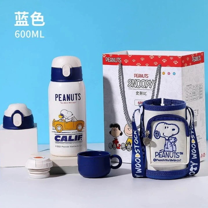 「2026 人気商品!」スヌーピー子供用水筒 600ml キッズボトル コップ&直飲み 子ども プレゼント 保冷 保温 ストロー付き 可愛い 通園 通学 カバー付き クリスマスプレゼント