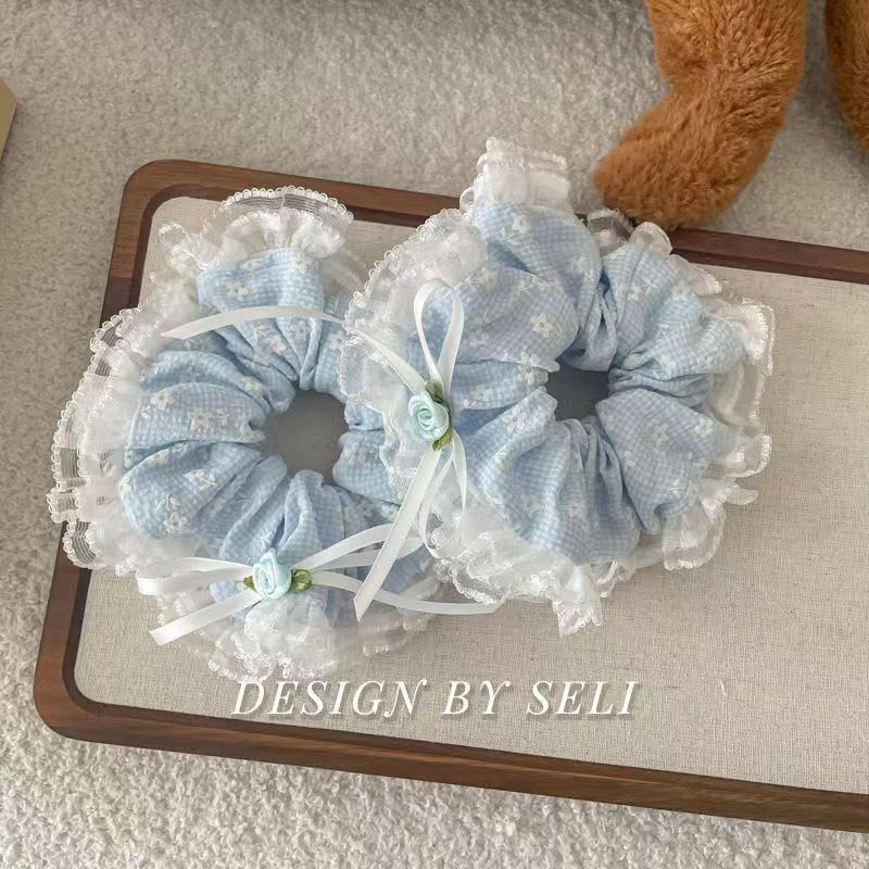 薄青小清新レース花リボン大腸シュシュ甘い馬尾団子髪ひもひも女