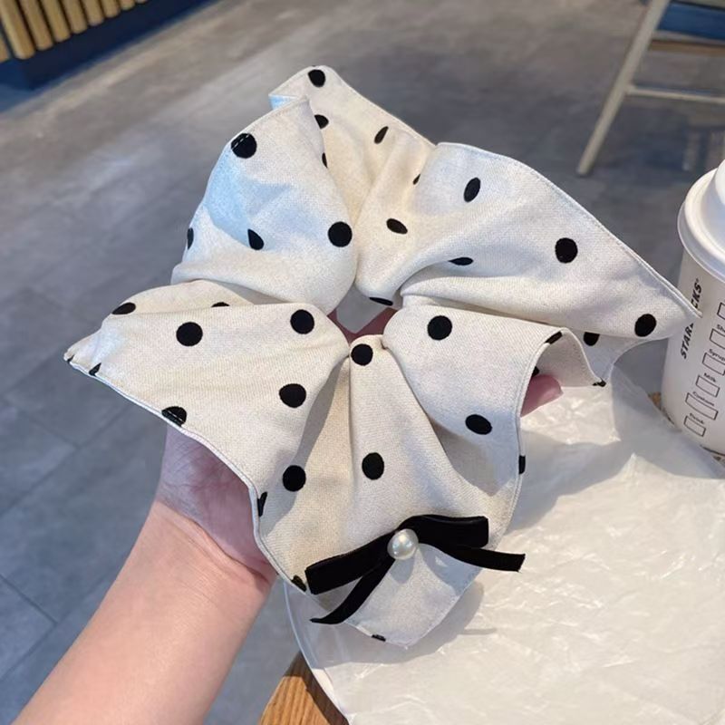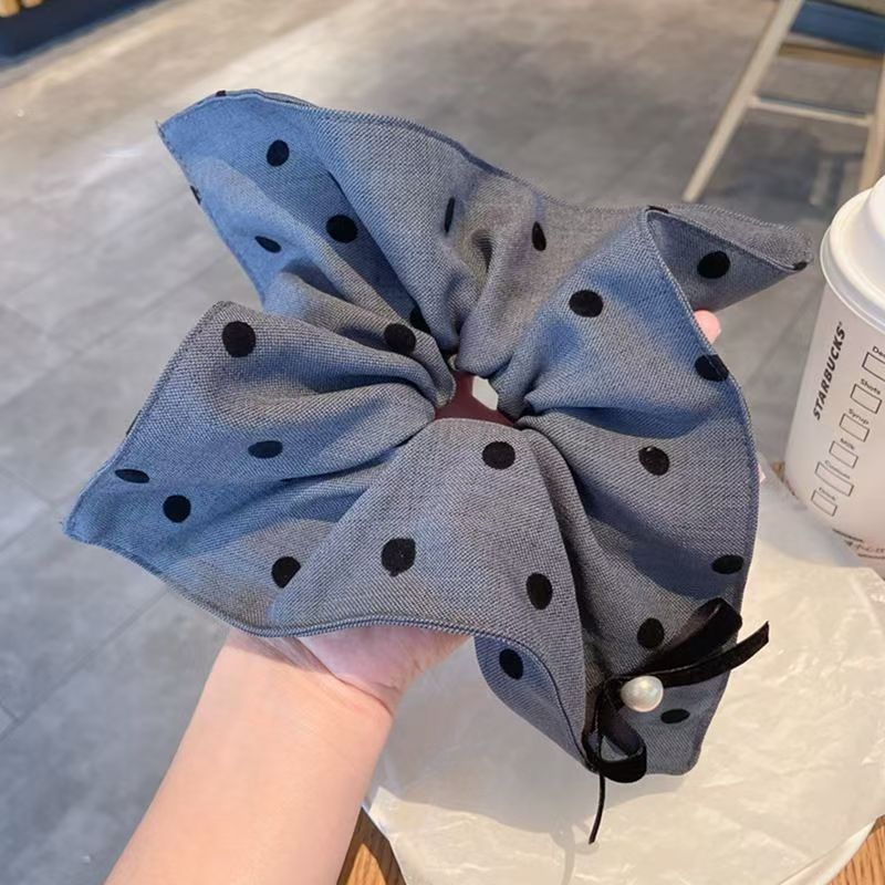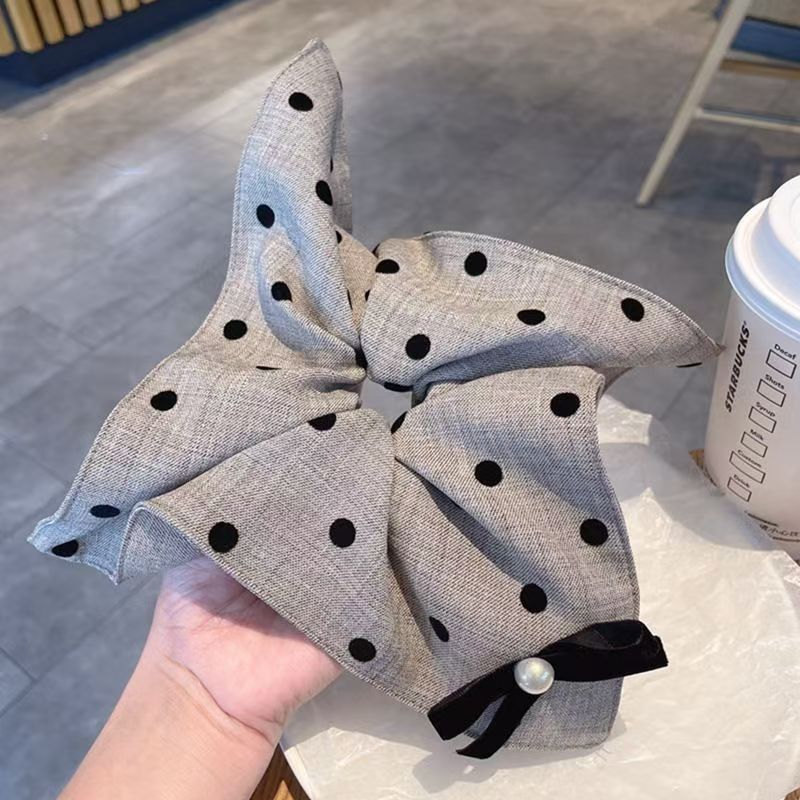 秋冬の新しい波点布芸方巾シュシュヘアバンド気品優雅なリボンヘアバンド百合丸子頭髪飾りドット柄