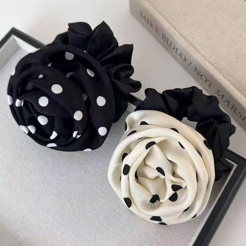 新フレンチドットローズ大腸シュシュ髪を束ねる爆金気質高容貌値耐久高級感髪飾り女ドット柄