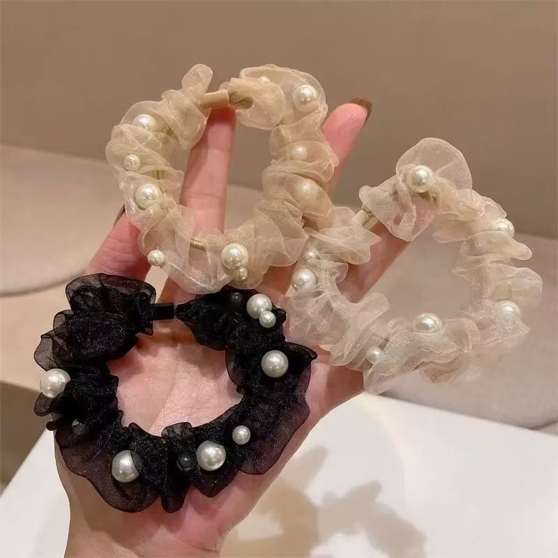 韓国版欧根糸釘真珠シュシュ仙気網糸弾力髪ゴム少女ファッション腸輪純色髪ロープ