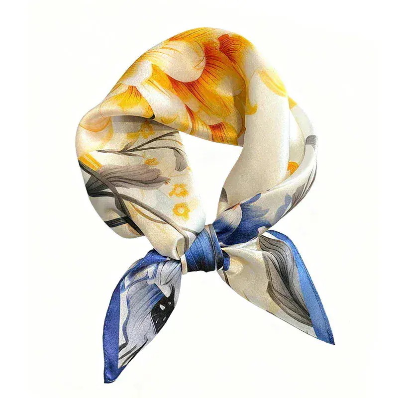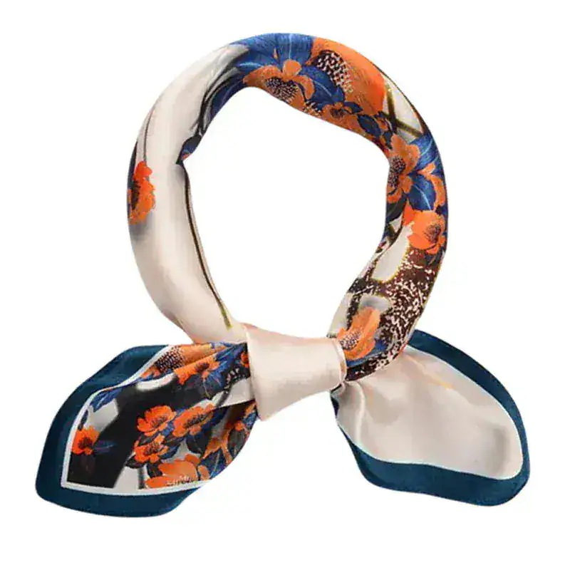 レディース 大人気 シルク100% スカーフ 53cm 正方形 ピンク ピンク フラワー プリント 春 秋 ヘアスカーフ として ギフト プレゼント