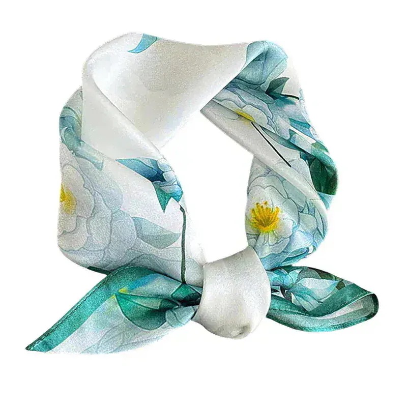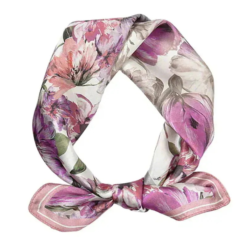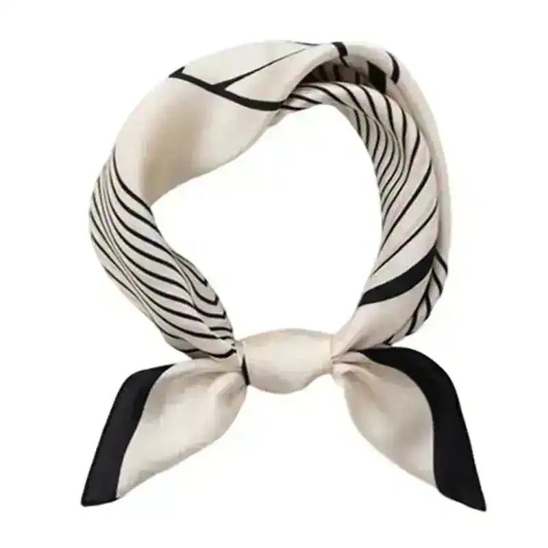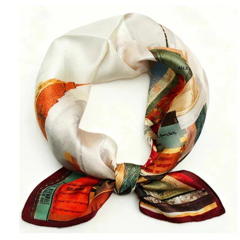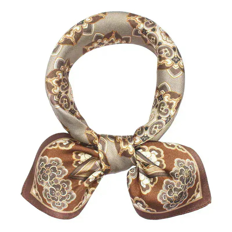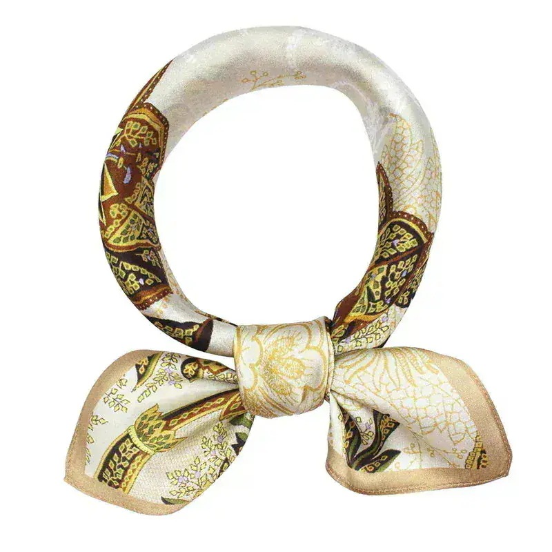 春夏 軽やか シルク スカーフ 53cm ベージュ 正方形 オレンジ ボヘミアン 柄 ヘッドスカーフ ト ネッカチーフ 海外 でも 人気 贈り物