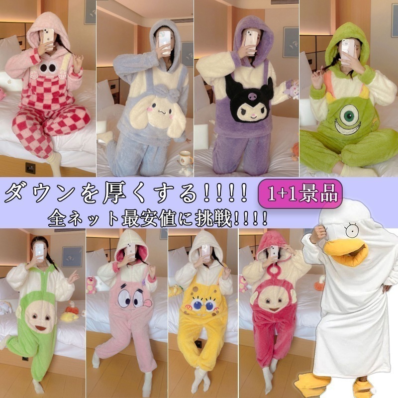 [今週のお買い得]パジャマルームウエア着ぐるみもこもこフード付き厚手上下セットセットアップハローキティマイメロディシナモンロール可愛い秋冬値下げしました!