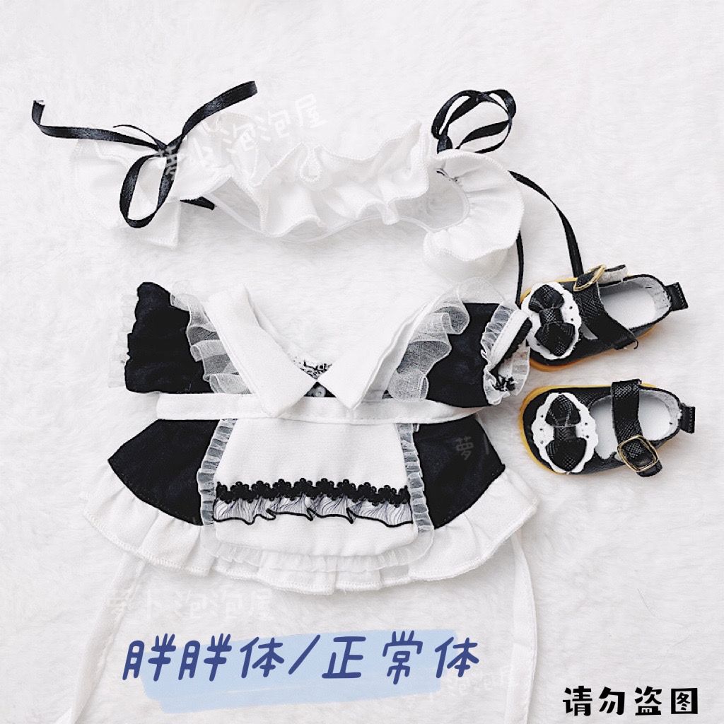 [今週のお買い得]20cmベビー服白黒メイドスカートスーツプリンセスシューズカチューシャファットボディ20cmセレブドール服値下げしました!
