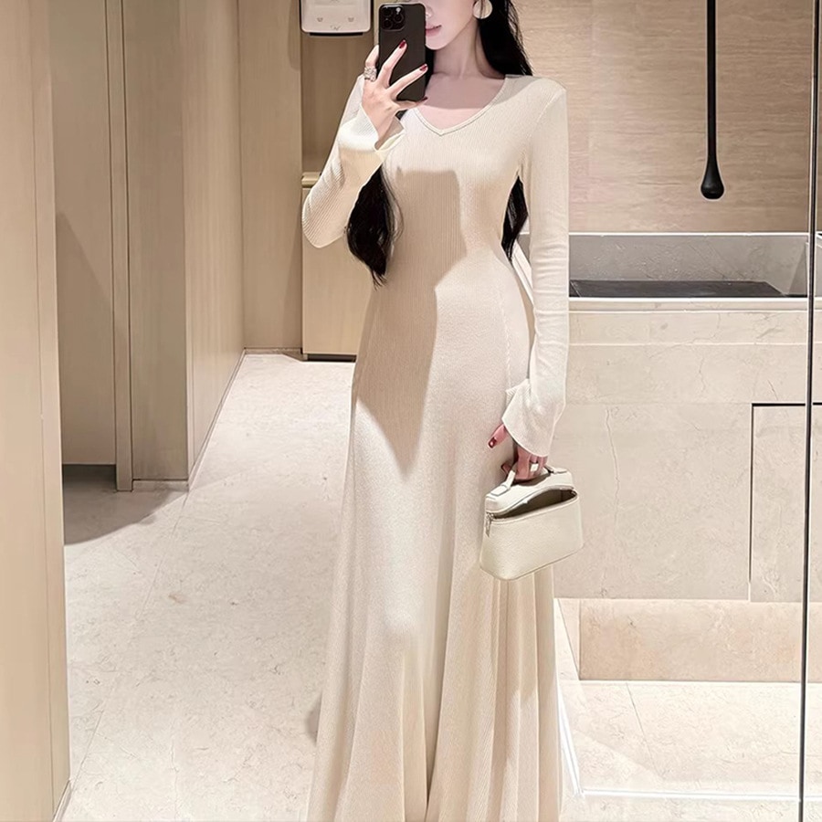 長袖ボトムスワンピース レディース 2025新作 上質インナー スリムニットスカート スリムロングスカート