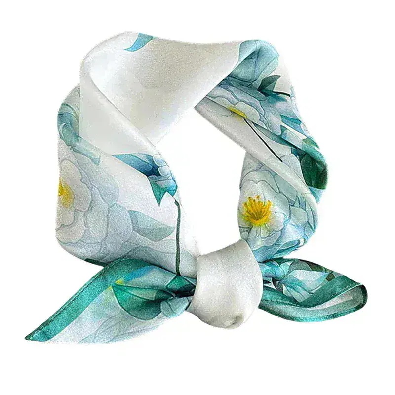 【53cm正方形】シルク100% ミニスカーフ ベージュ 緑 青 グラデーション プリント メンズ レディース ヘアバンド ネッカチーフ として 多用途