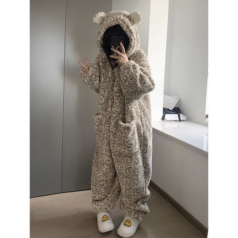 【3日以内出荷】超特価 パジャマ ルームウェア冬の2023年新作連体パジャマかわいいキャラクターヒョウ柄厚手サンゴ絨毯の部屋着レディース 韓国