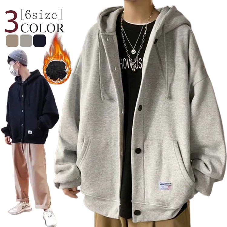 【3日出荷】今年とくに大人気!パーカー 原宿風 秋アウター カーディガン メンズ ボタン開き フード付きパーカー 大きサイズ ビッグシルエット ストリート系 学生 通学 中学生 春服 秋服 メンズファ