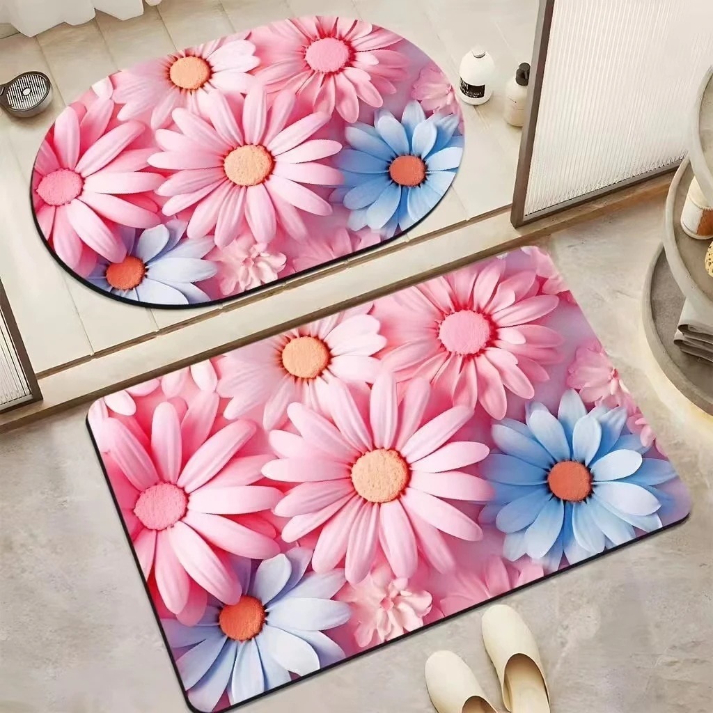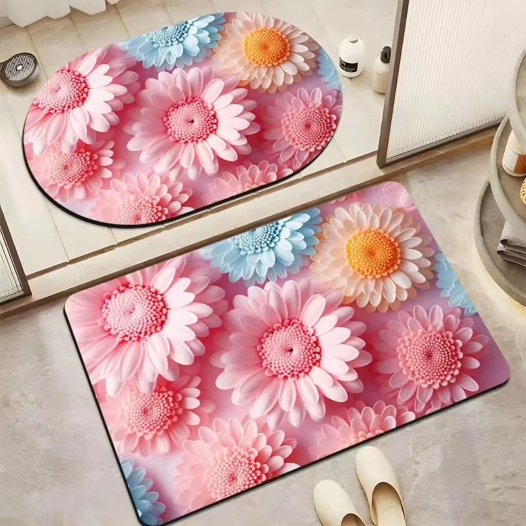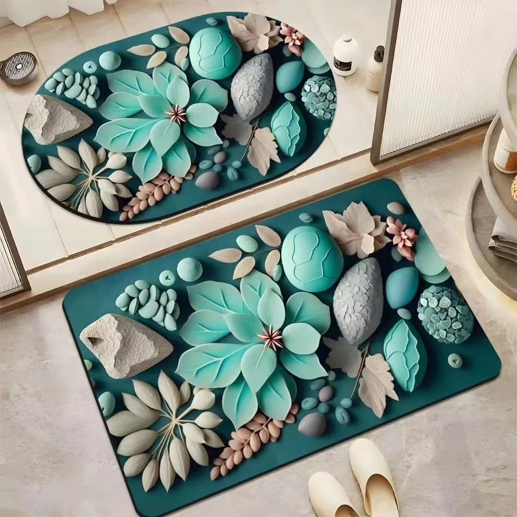 新しい立体花珪藻泥吸収性バスルームフロアマット速乾性トイレドアカーペット滑り止め足