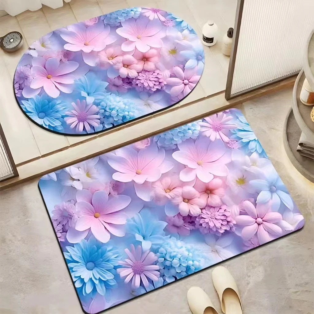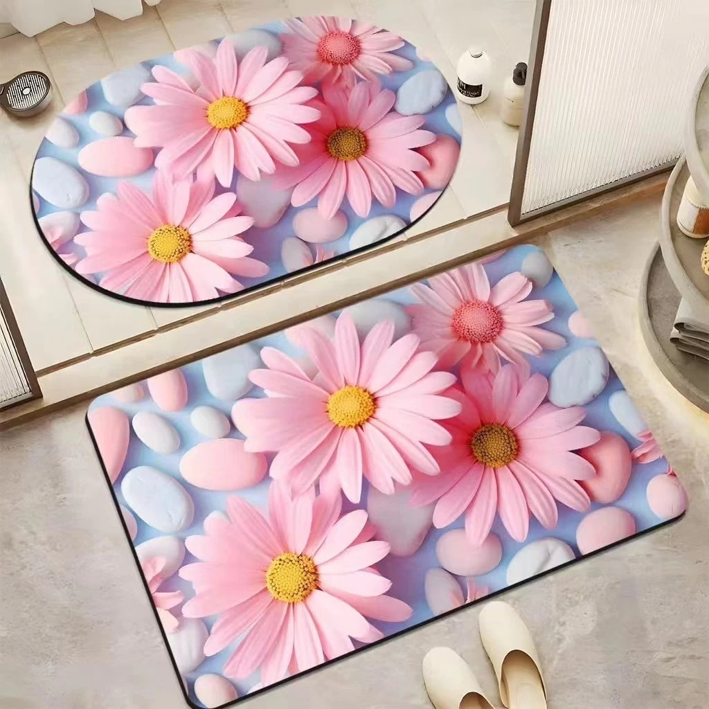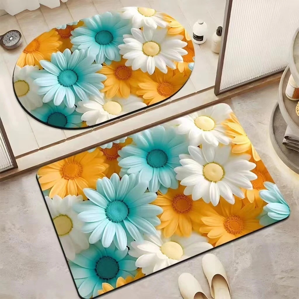 新しい立体花珪藻泥吸収性バスルームフロアマット速乾性トイレドアカーペット滑り止め足