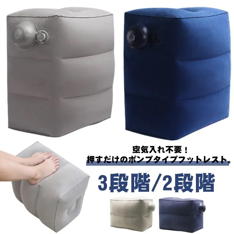 【時限割引】フットレスト ポンプ不要 空気入れ 簡単 3段階2段階 足置き エアークッション 旅行 飛行機 機内 便利グッズ 足枕 オットマン エコノミー症候群 むくみ 対策 デスクワーク オフィス