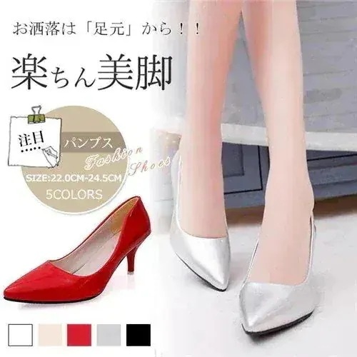 【优质产品】パンプス エナメル ポインテッドトゥ レッド シルバー ベージュ ホワイト ブラック ピンヒール ハ