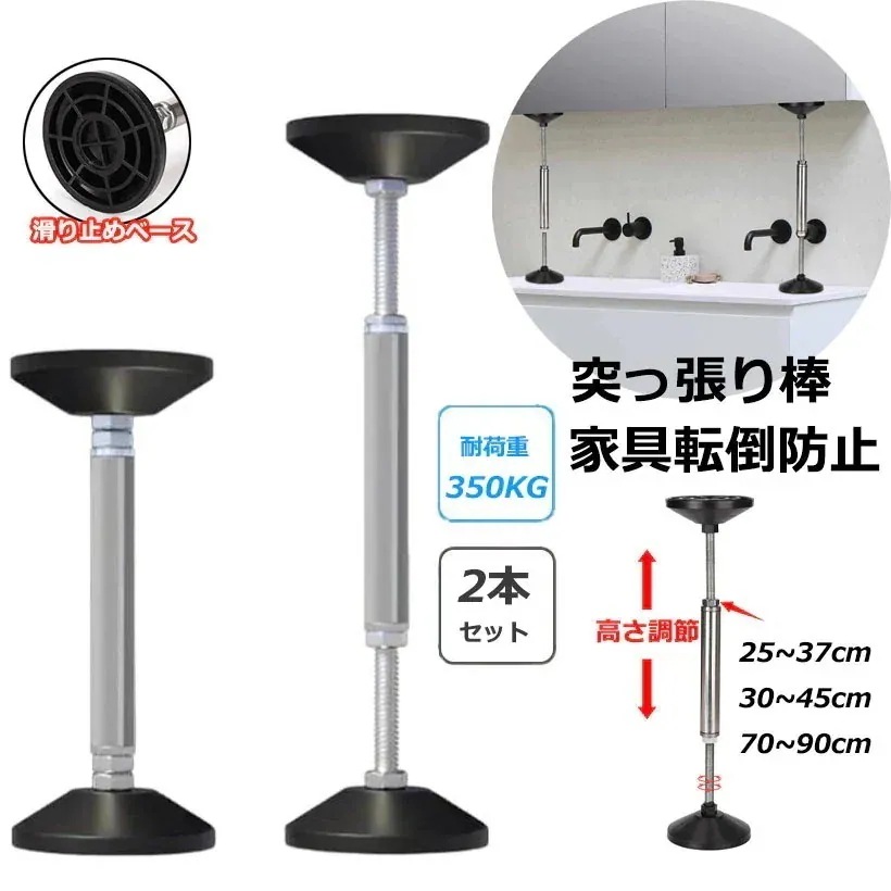 2本セット 転倒防止 家具 つっぱり棒 地震対策 突っ張り棒 長い 家具転倒防止突っ張り棒 ステンレス製 耐震対策 防災措置 本棚 冷蔵庫 食器棚 天井用 ール タンス テーブル 家
