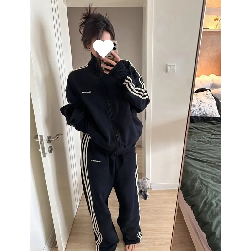 カレッジスタイルスポーツウェアスーツ女性用韓国風ゆったり痩身ファッショナブルなスウェットシャツランニングツーピースセット