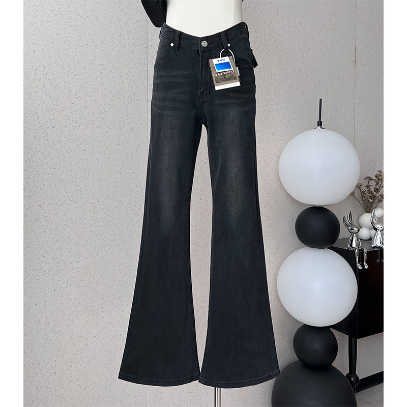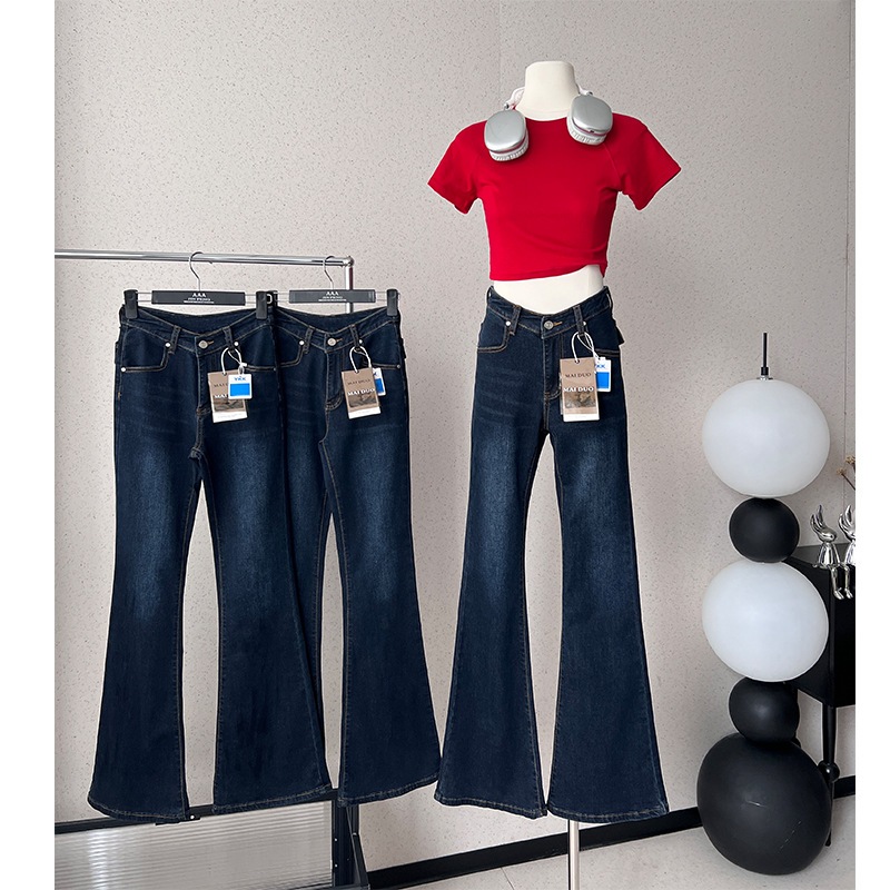 ダークブルーハイウエスト弾性スリムマイクロフレアアメリカンジーンズレディース168トールスリムフロアパンツ