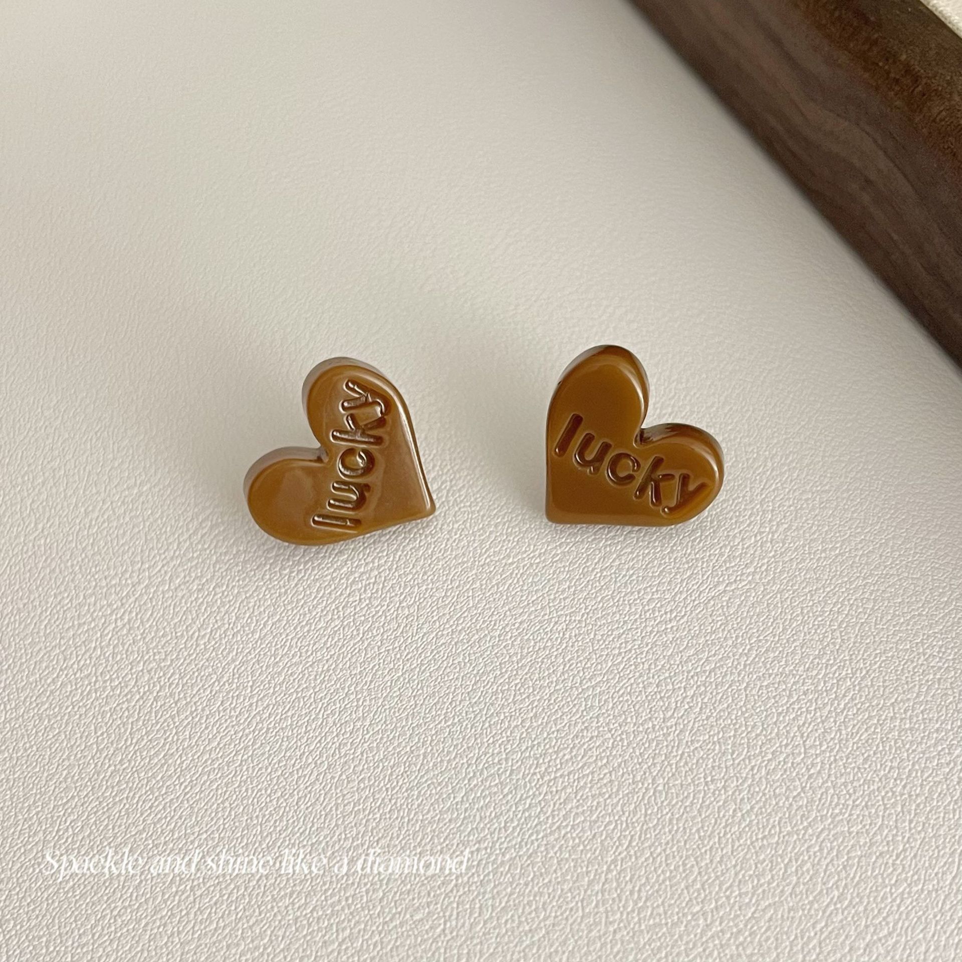 樹脂ラブレターイヤリング2025新しい秋と冬のすべてのマッチガーリーハートイヤリング甘いニッチな気質のイヤリング
