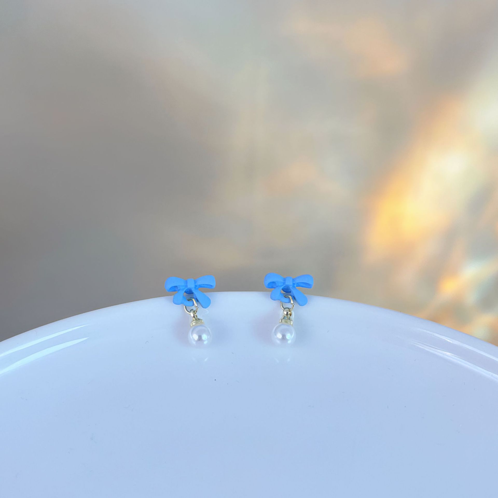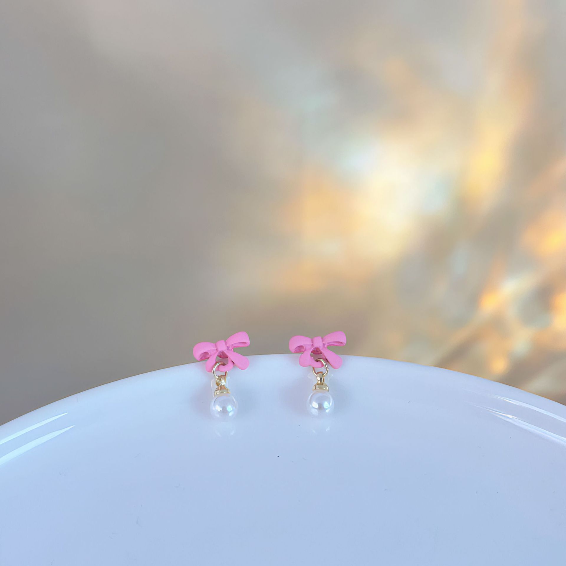 蝶結びパールペンダントイヤリング S925 シルバー 甘い雰囲気 ガーリーハートイヤリング ニッチデザイン オールマッチイヤリング