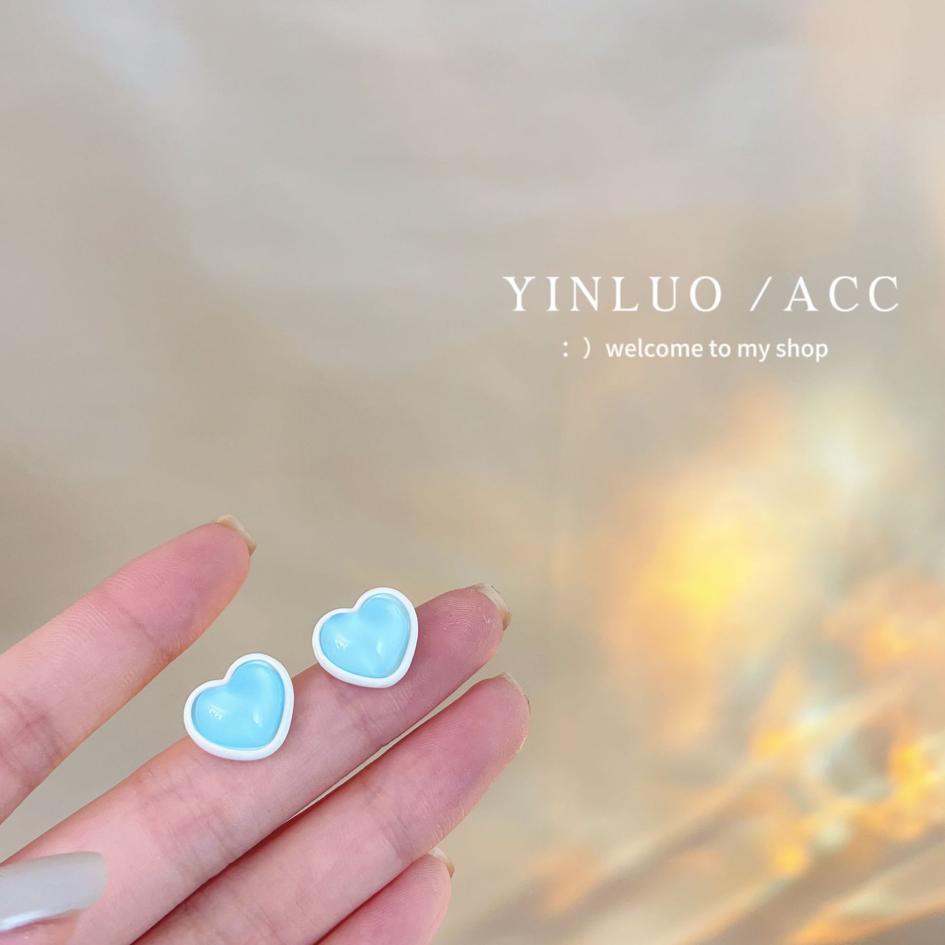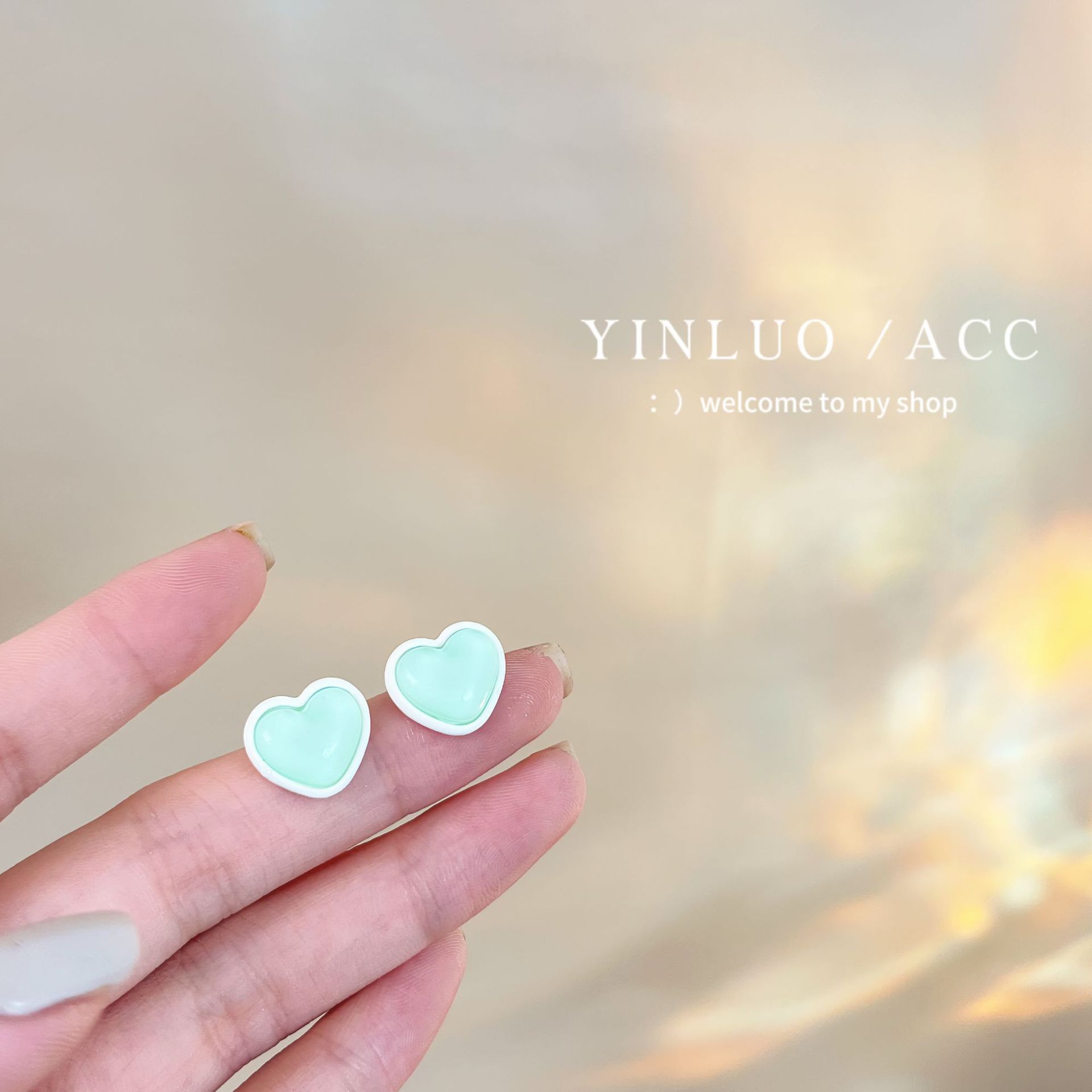 夏のキャンディカラーのハート型イヤリング S925 シルバーニードル 甘くて小さな新鮮な女の子のハート型イヤリング 気質のある万能イヤリング