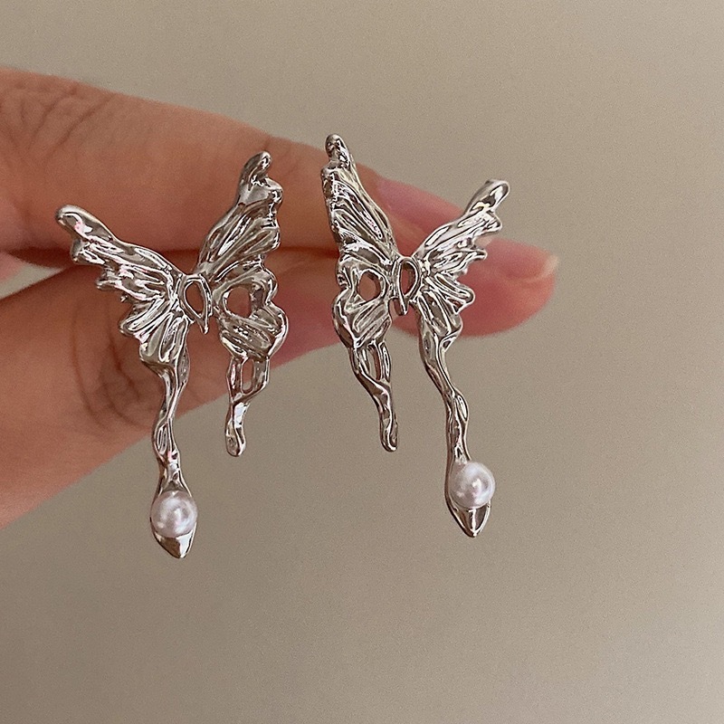 S925シルバーリキッドバタフライイヤリングレディースインニッチハイエンドコールドウィンドイヤリング2025新デザインイヤリング