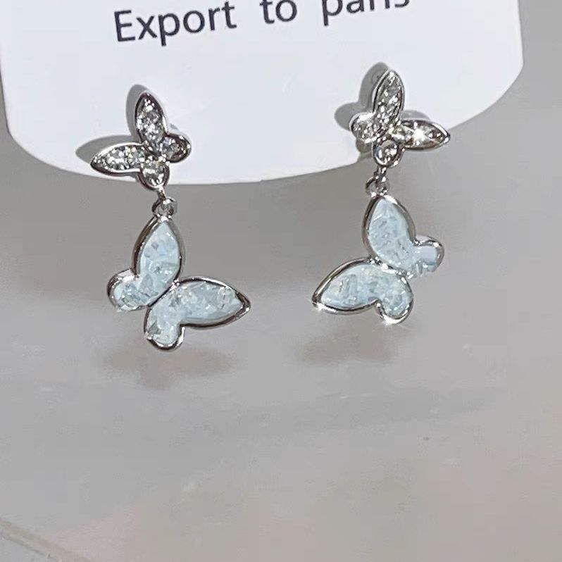 女性のためのグラデーションブルークリスタルバタフライイヤリングデザインニッチ絶妙なイヤリング2025年の新しい気質のイヤリングイヤリング