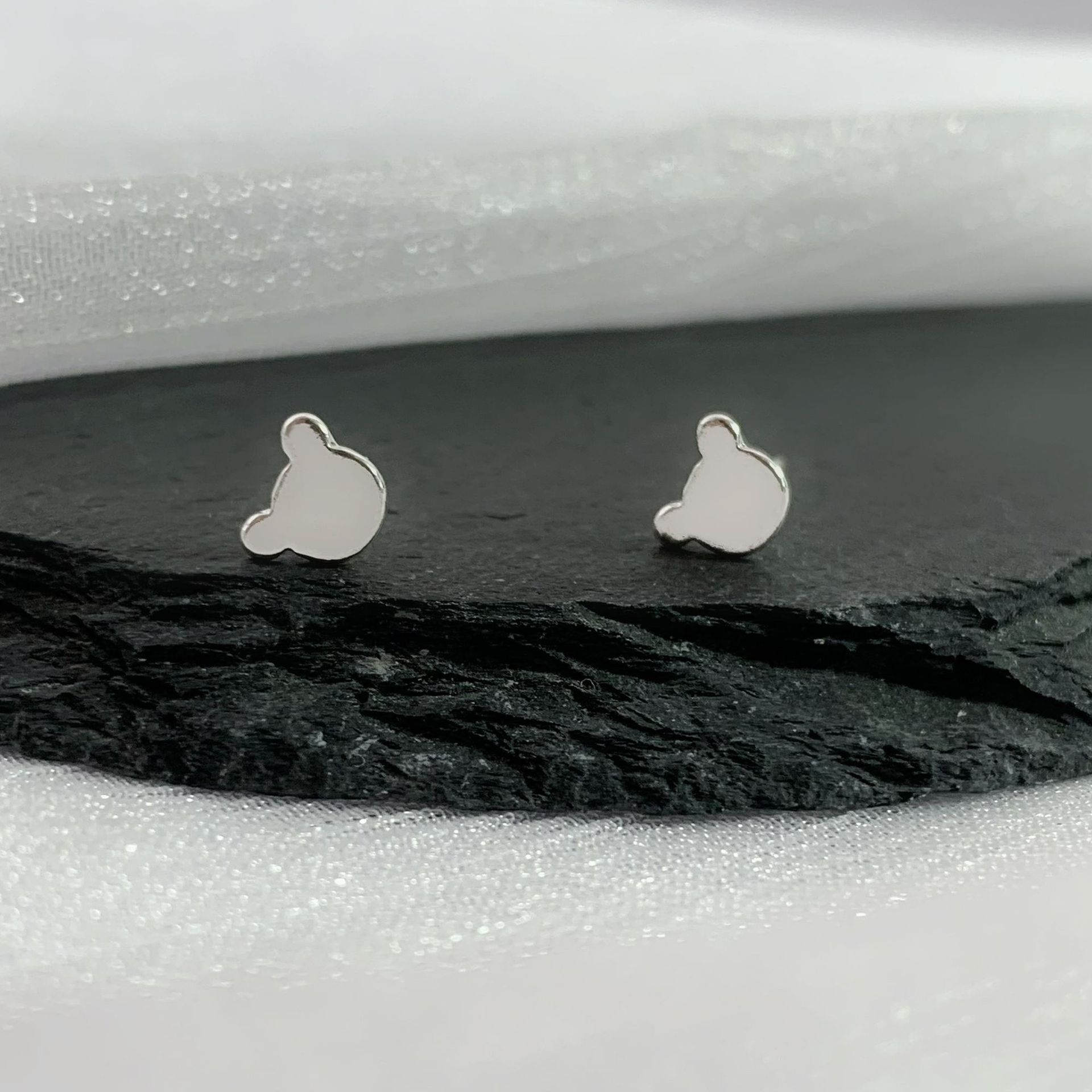S925シルバープレーン多用途クマイヤリングレディース2025甘くてクールなニッチな気質冷たいスタイルのシンプルなイヤリングイヤリング