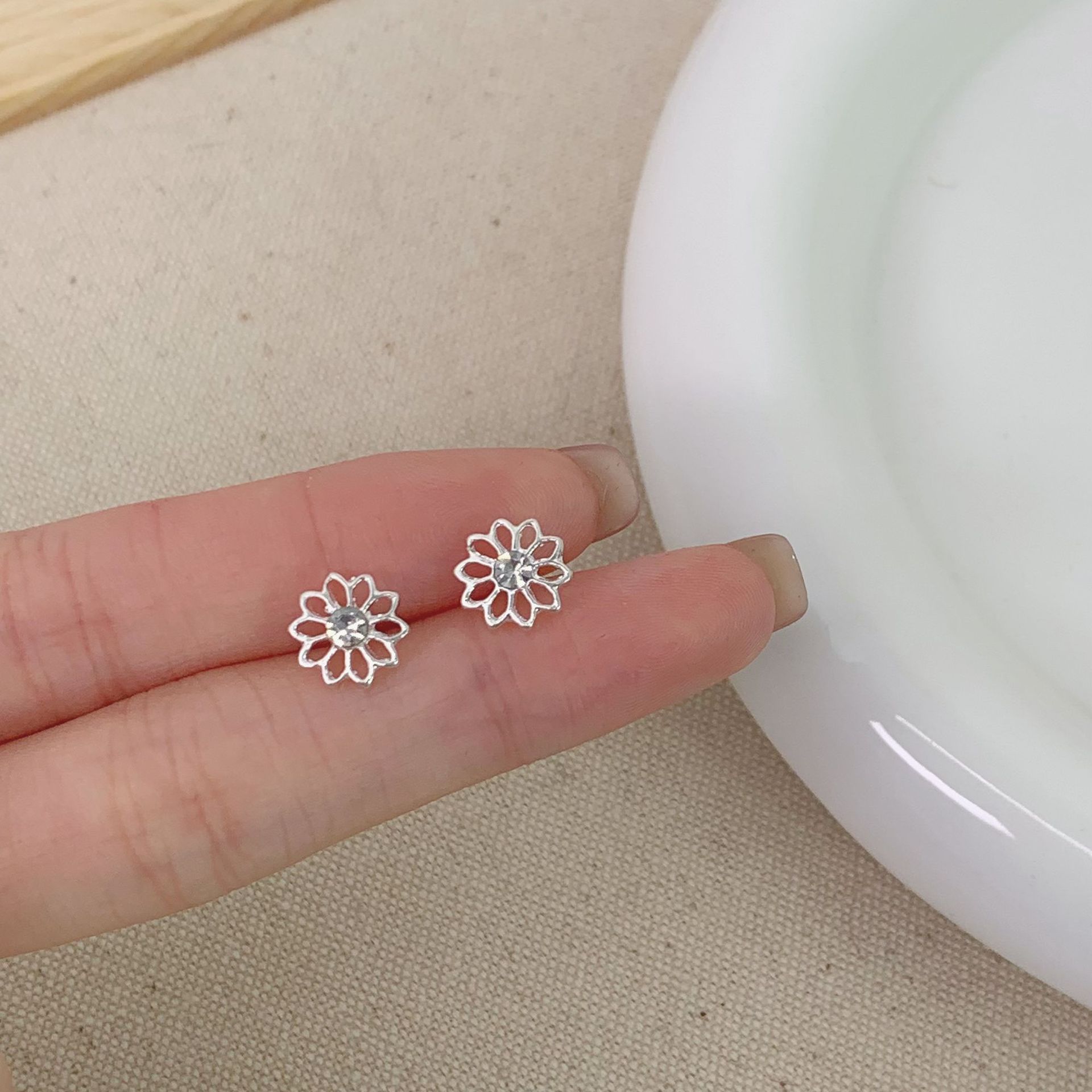 新鮮で甘く絶妙なダイヤモンドがちりばめられた中空の花のイヤリングS925シルバーのシンプルで万能なデザインのイヤリング