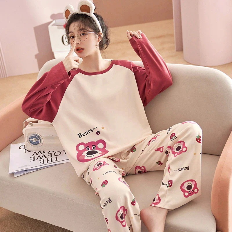 レディースパジャマ春秋韓国スタイル新しい大きいサイズ女性ホーム服かわいい漫画パジャマ秋セット