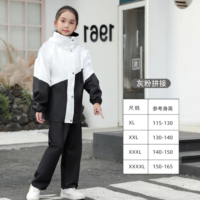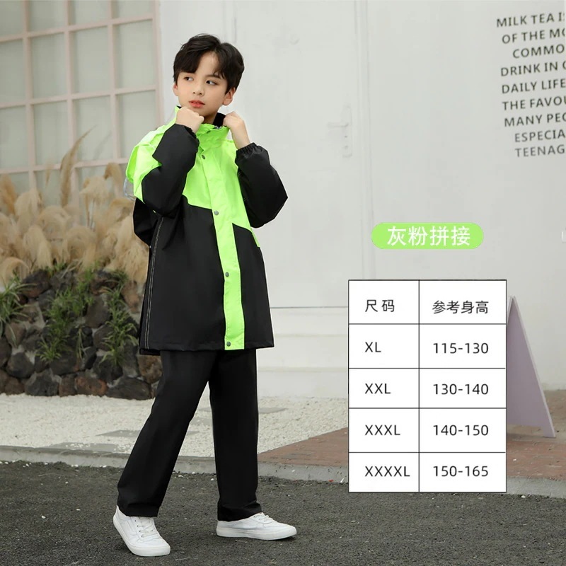小学生のレインコートとレインパンツの男の子と女の子のスーツスクールバッグと防水の全身レインケープ