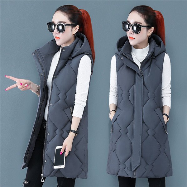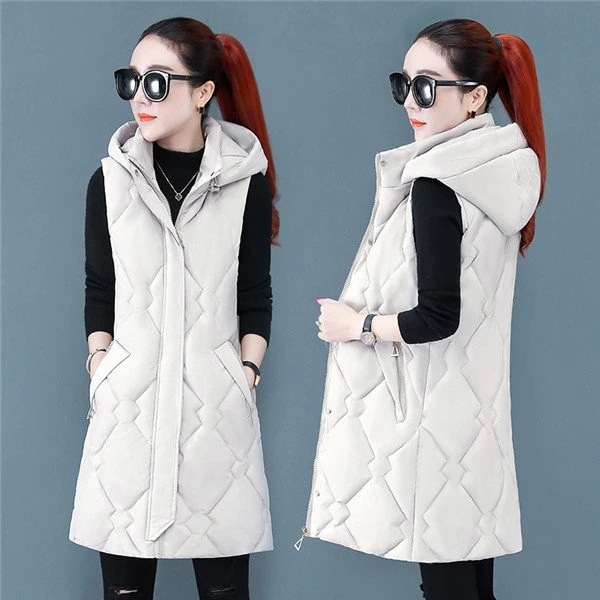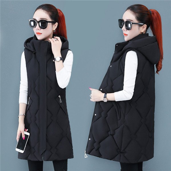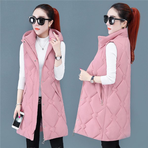 レディース ベスト 中綿 ダウンベスト ジレ 厚手 前開き ノースリーブ ポケット付き ロングベスト フード付き アウター カジュアル 防寒 寒さ対策 ゆったり