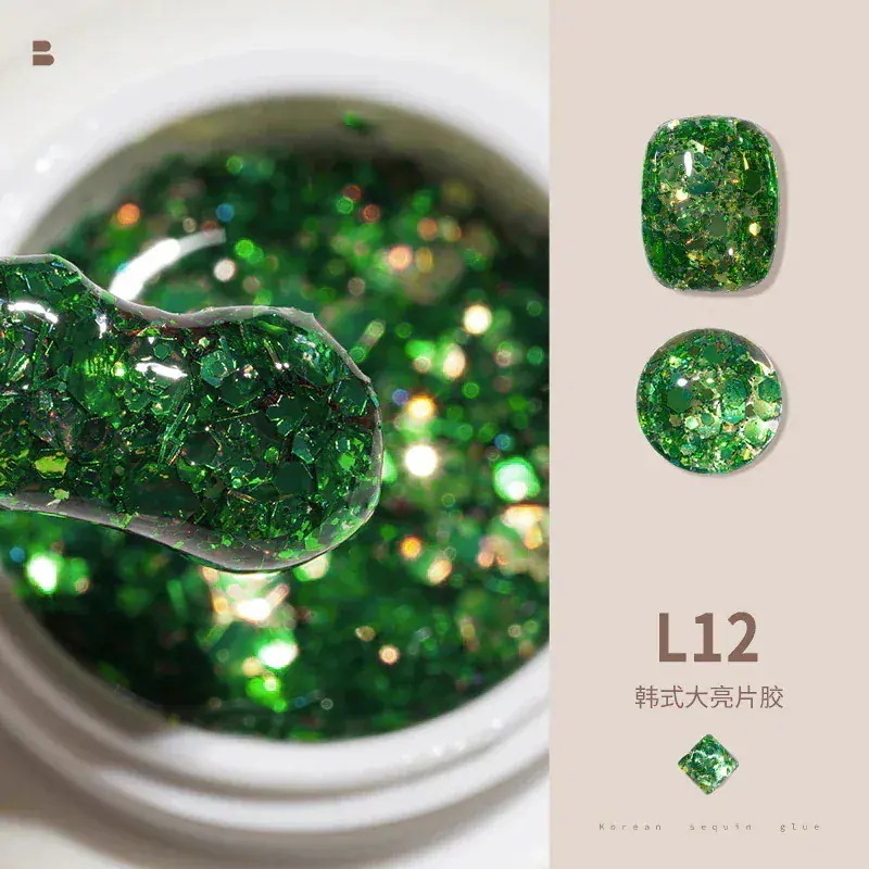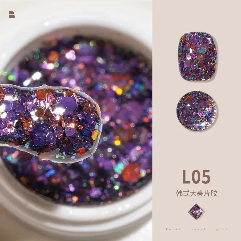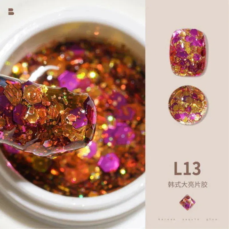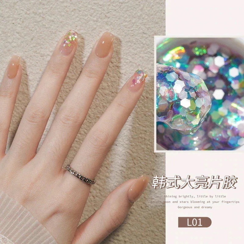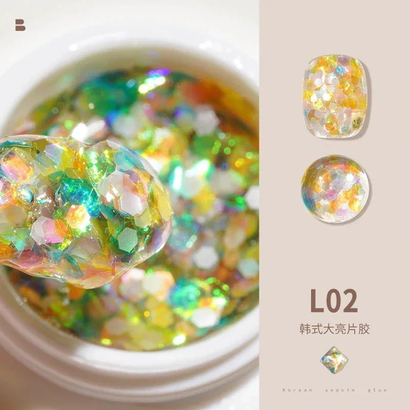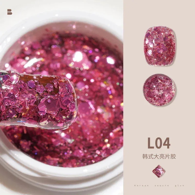 ビッグスパンコールジェルネイルセットフルセットキラキラネイルキラキラピンク幻彩ネイルジェル装飾L11