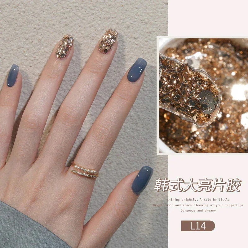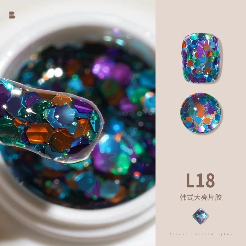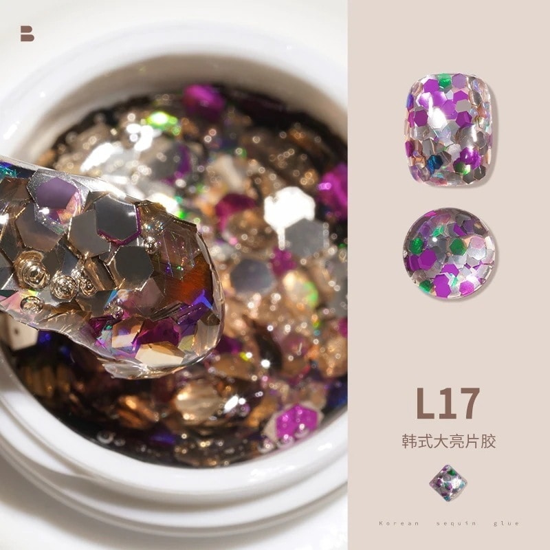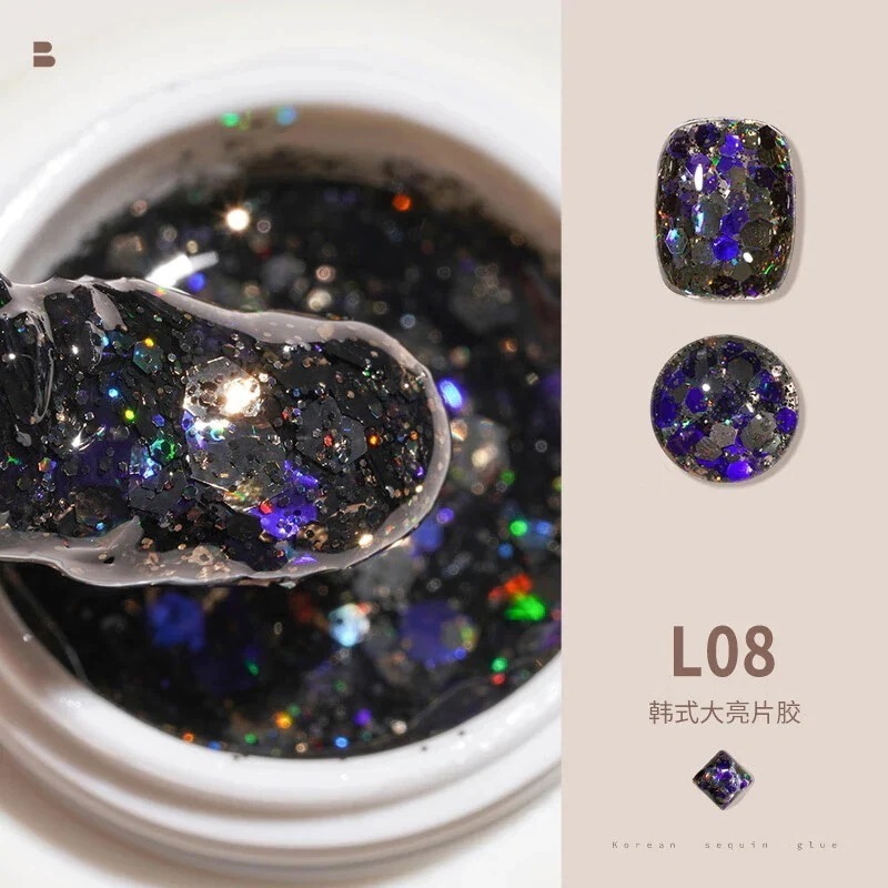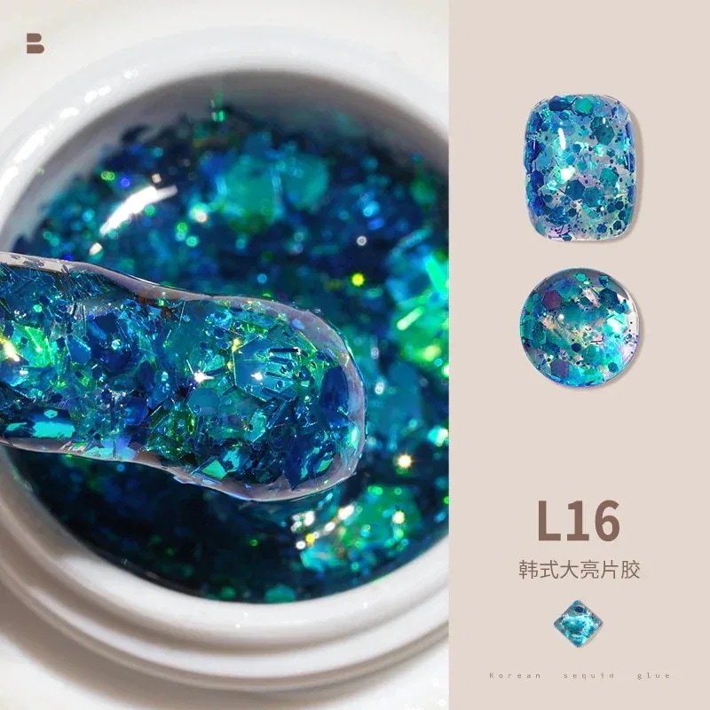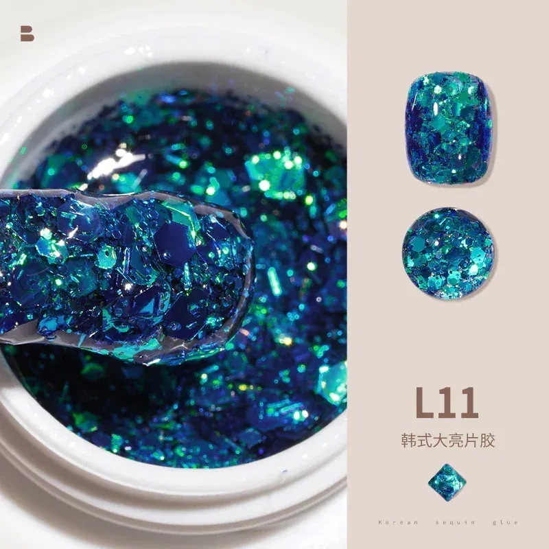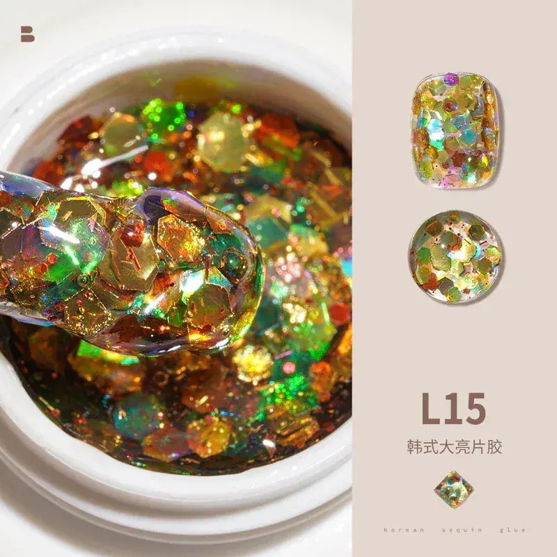ビッグスパンコールジェルネイルセットフルセットキラキラネイルキラキラピンク幻彩ネイルジェル装飾L11