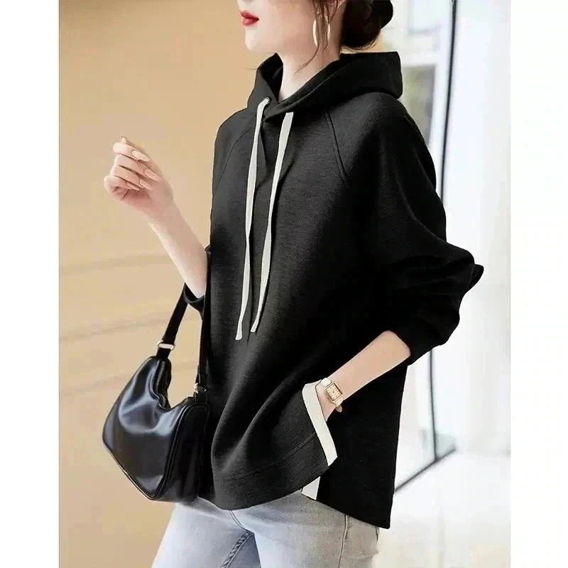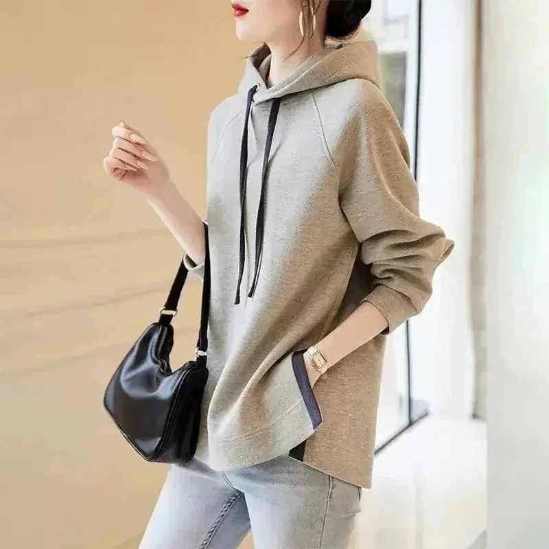 急速出荷無料 ゆったりスウェット パーカー 純綿連帽の衛衣ゆったり25モデル新型グレーの腹部カバーの開叉上着に綿毛の厚手のフードシャツ ロンT 裏起毛ファッション韓国ファッション