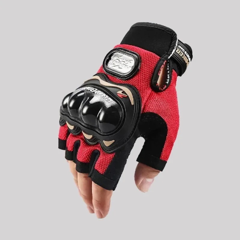 本日用 バイクグローブ メッシュ スマホ対応 男女兼用 プロテクター付き 通气性良好 滑り止め ブラックレッド ライディンググローブ メンズ レディース