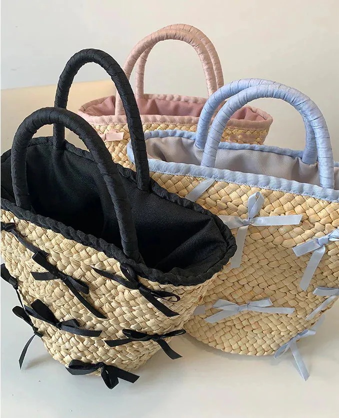 [IRC]レディース バッグ ハンドバッグ かごバッグ リボン かわいい 韓国 おしゃれ