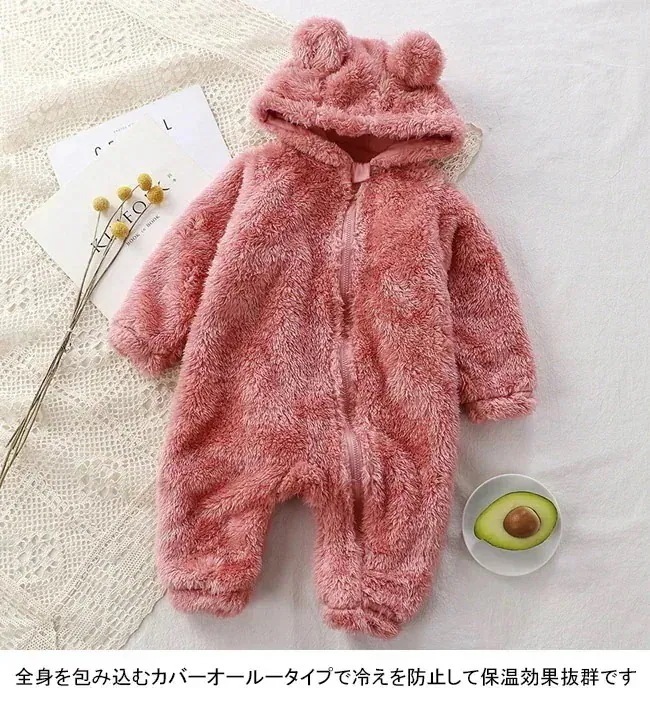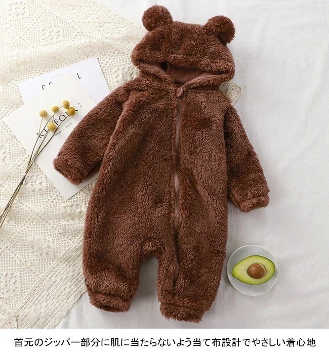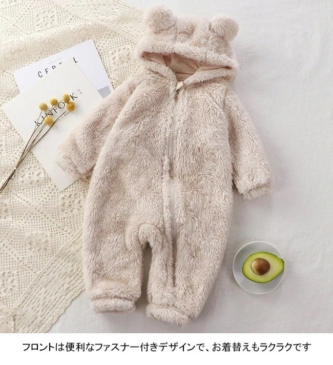 ロンパース レディース スリープウェア クマ 耳付き フード付き しっぽ付き 長袖 前開き