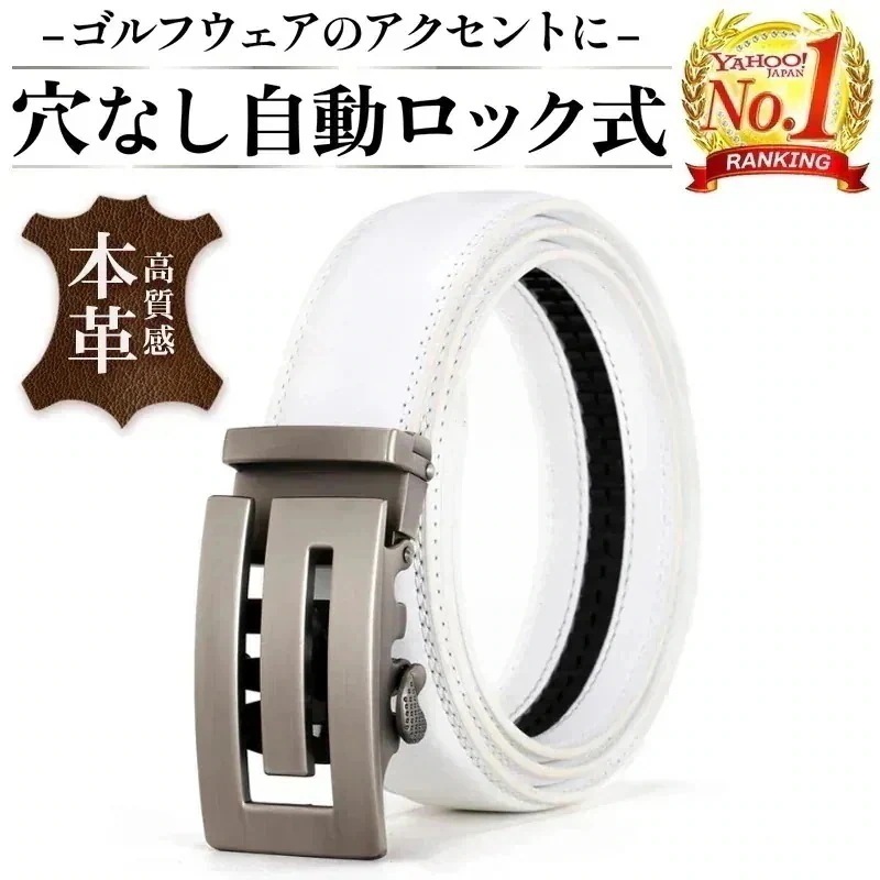 人気の新作ゴルフ ベルト メンズ 白 おしゃれ 穴なし 革 レザー 無段階 長い 父 夫 プレゼント 30代 40代 50代急速出荷