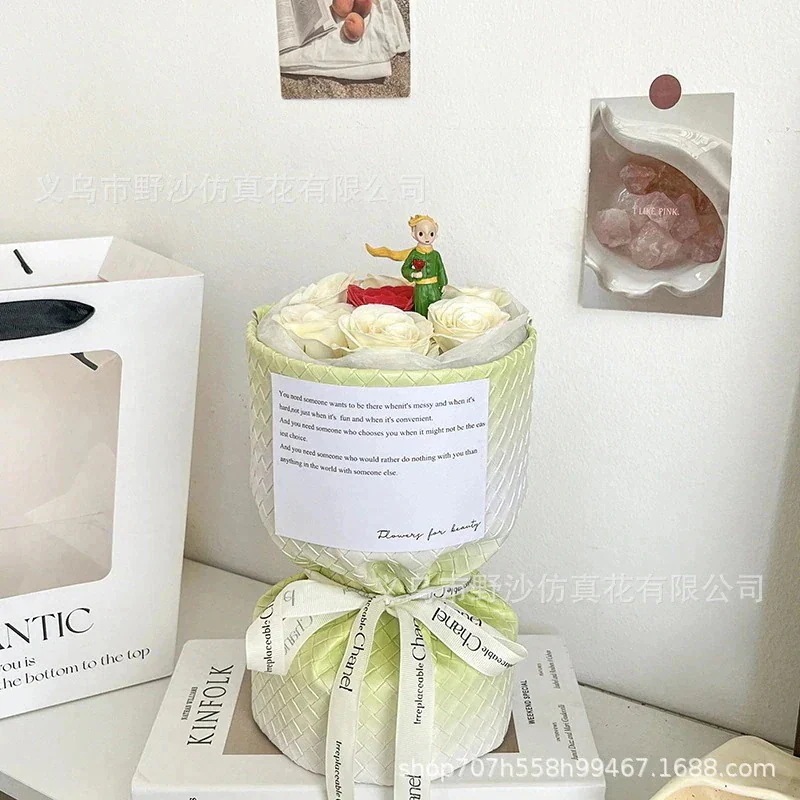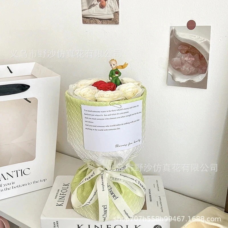星の王子さまが手に花を持っているバレンタインデーのギフトバラの石鹸の花の花束完成品ガールフレンドへの新しい誕生日プレゼント
