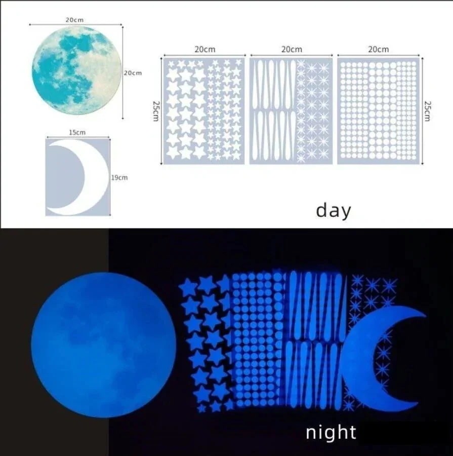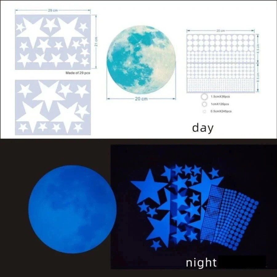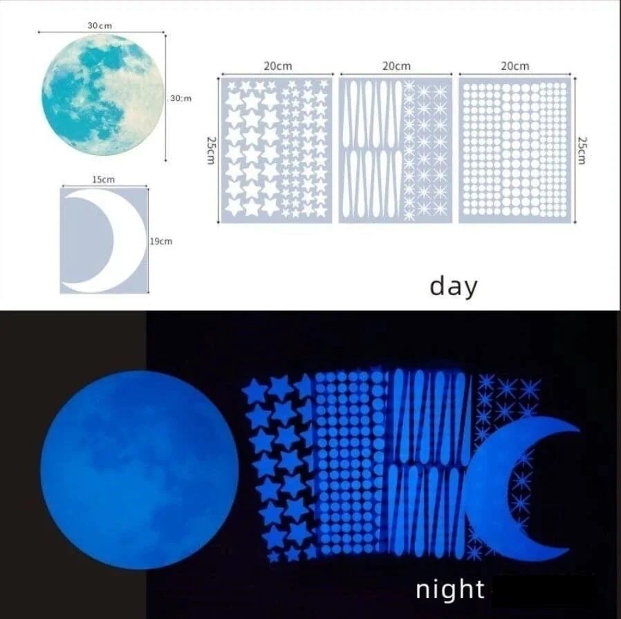 夜光ステッカー 蓄光 シール 夜光シール 月 ウォールステッカー 壁のステッカー 光るシール 蛍光ステッカー 窓ステッカー 星空 きらきら ハロウィン クリスマス 小物 部屋 天井 子供