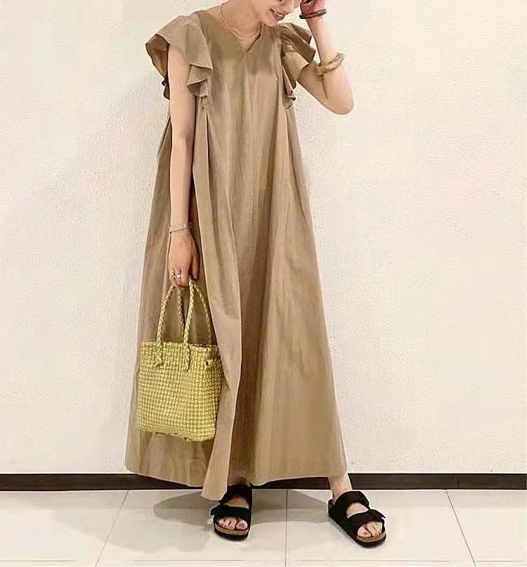 今年も人気!ワンピース シャツワンピース ロングワンピース レディース きれいめ 夏 春 Vネック マキシ マキシ丈 長袖 大きいサイズ ロング丈 ワンピ Aライン 体型カバー