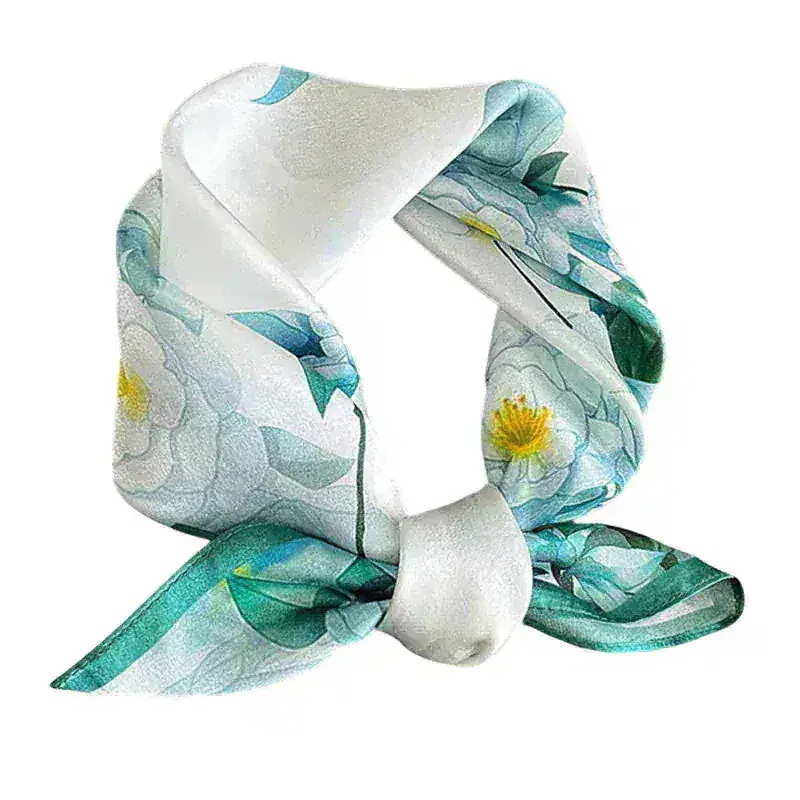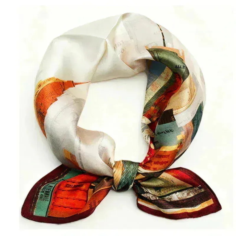 【ラッピング無料】抗菌 シルクスカーフ 通勤 オフィス に 清潔 保つ 53cm ベージ 赤 バラュ サラッと肌ざわり 父の日 母の日贈り物