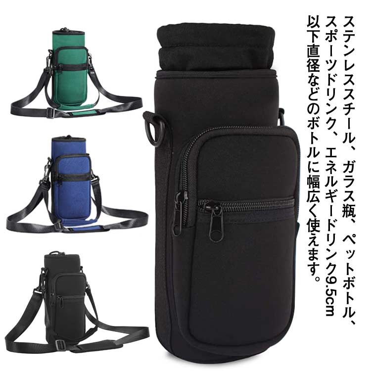 水筒カバー ショルダーハンドストラップ手提げ肩掛け 防水ポケット付 ペットボトルホルダー水筒ケース
